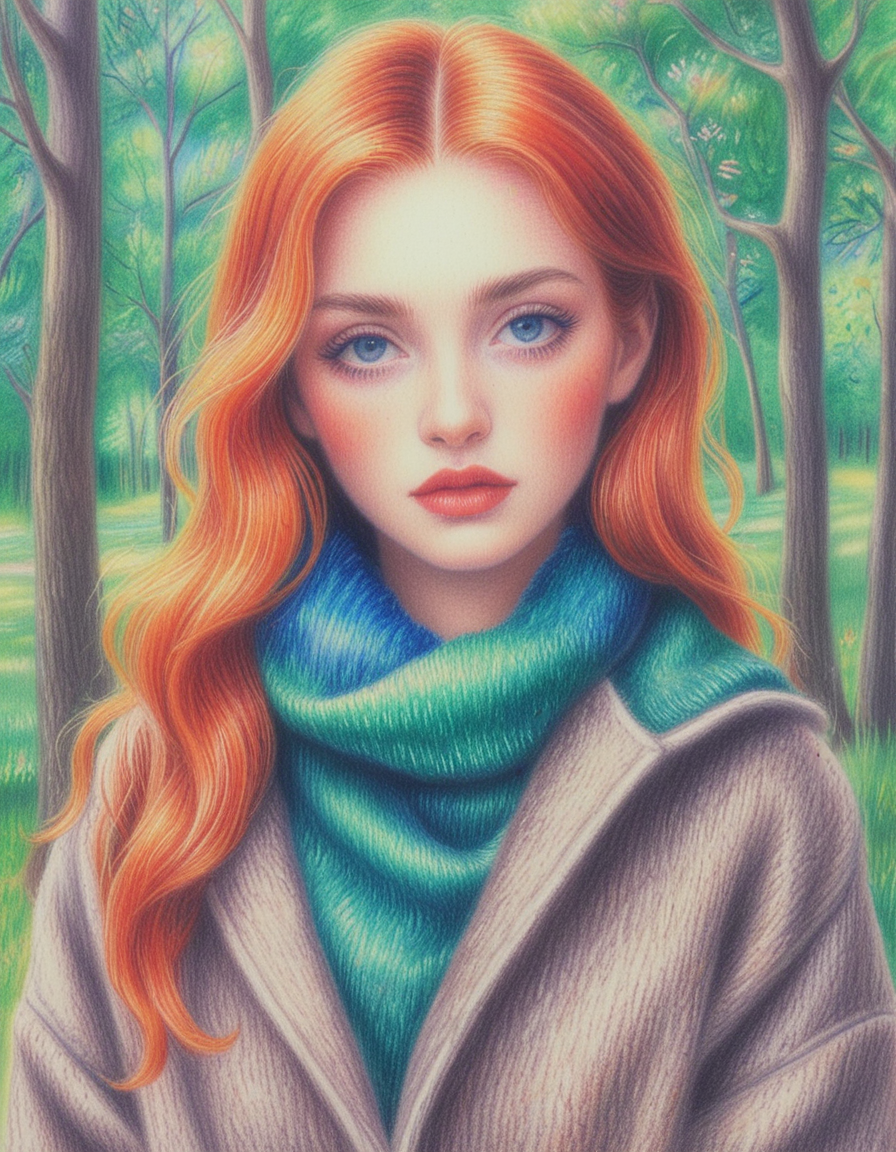 可见笔触と柔らかなトーンを持つ色鉛筆スタイル。プロンプトに「色鉛筆」と追加するのは必ずしも必要ではないが、スタイルの一貫性を高めるのに役立つ。Eulerサンプラは柔らかなトーンを強調し、DPM++ 2Mはより鮮明な筆跡を強調する。