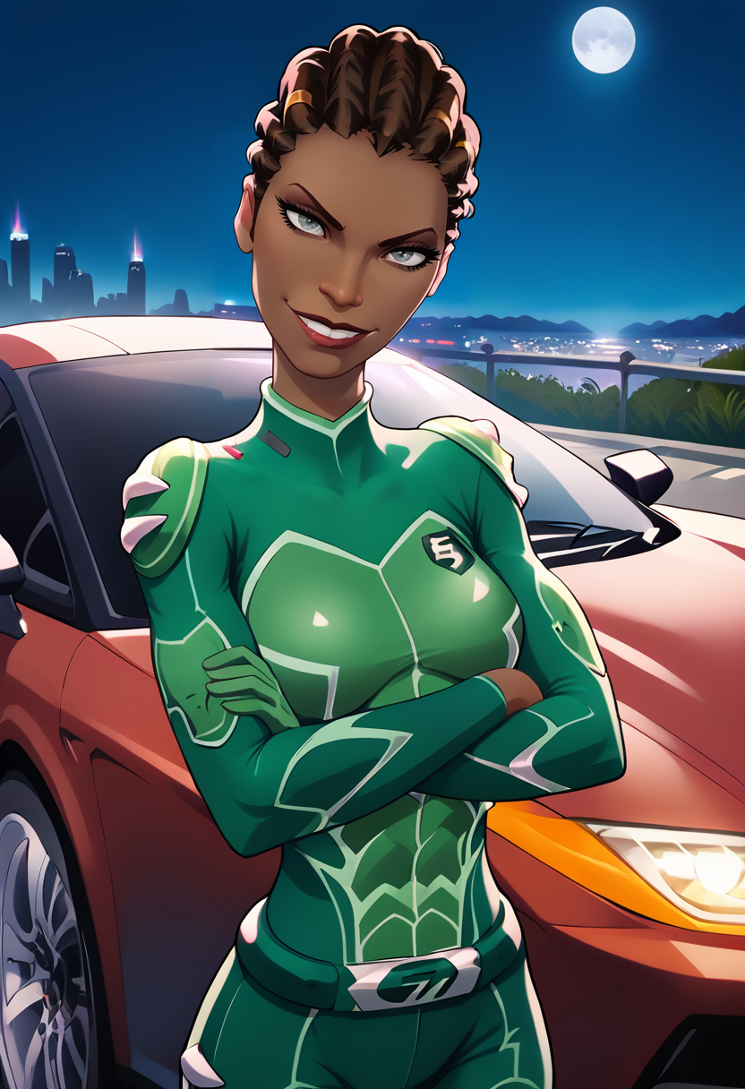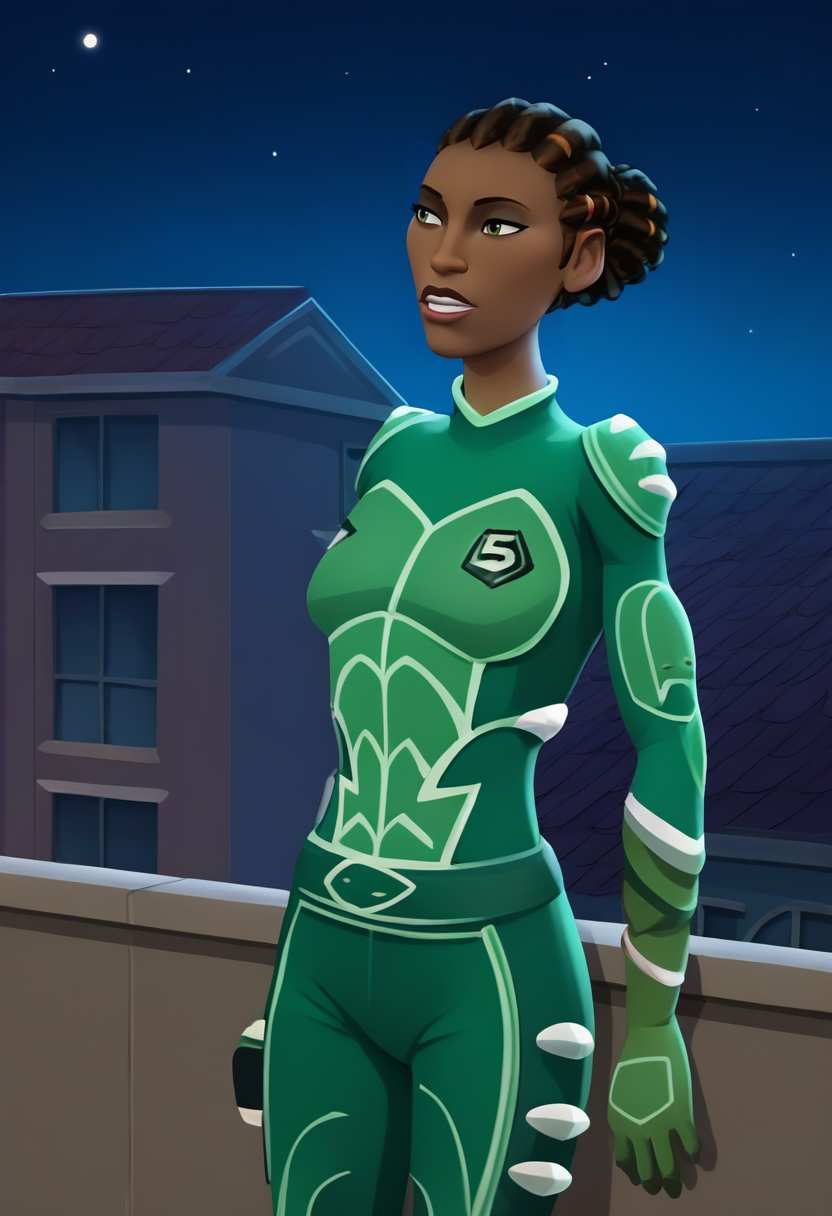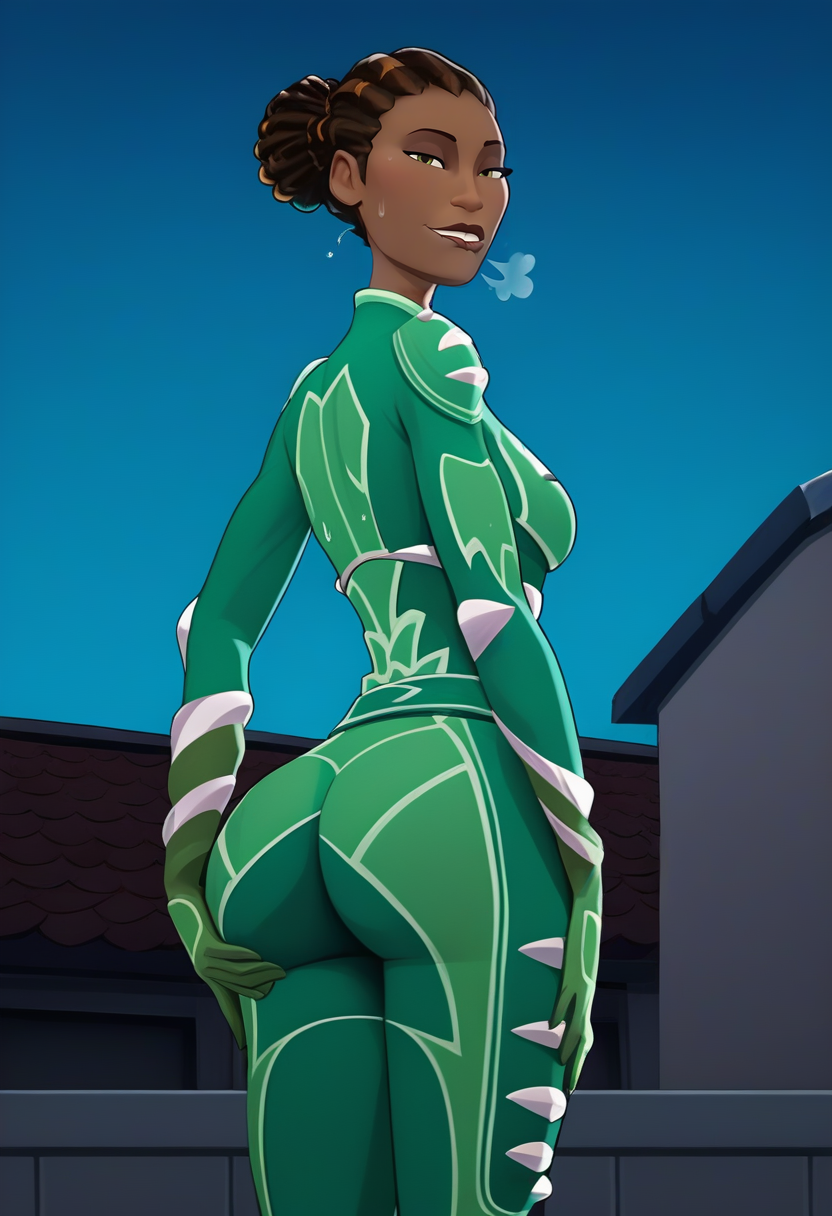 Trigger word: Agura Ibaden Principal Tags: Green bodysuit, dreadlocks, hair bun