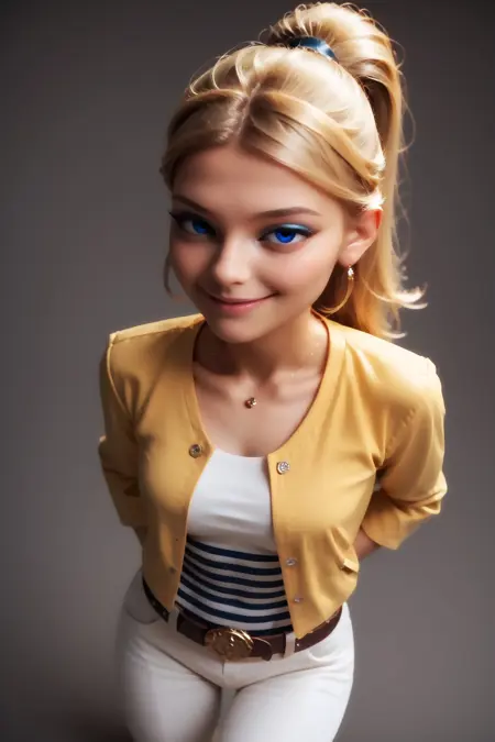 Chloe Prompts : 1girl, blonde hair, blue eyes, ponytail, long hair, eyeshadow, eyelashes, makeup, medium breast