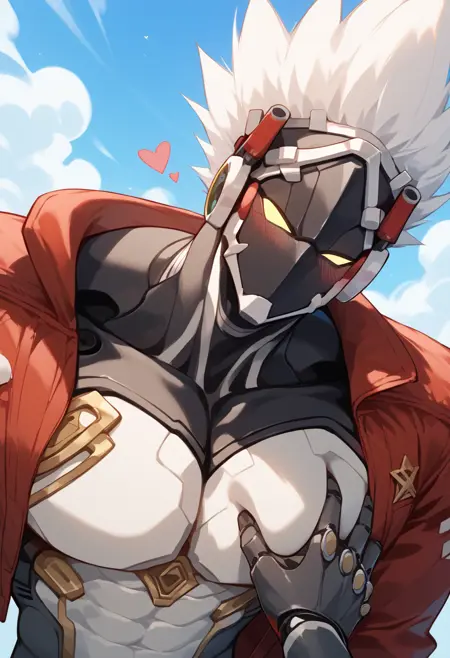 billy kid, 1boy, 白髪, 白いとがった髪, とがった髪, 黒いズボン, サイボーグ, ハート, ジャケット, 男性焦点, サイボーグの身体。彼の外観をさらに強化するために使用できますが、「Billy Kid」とだけ記述するだけで十分です。