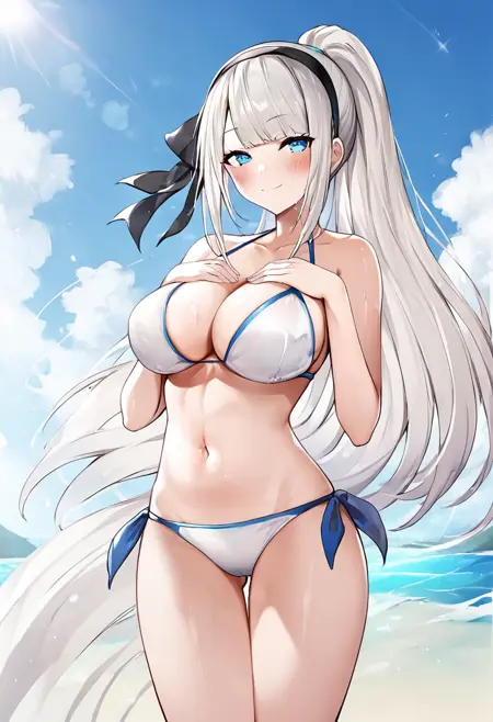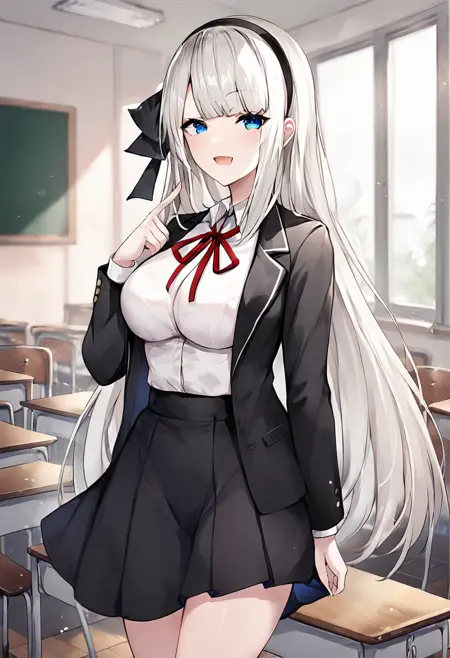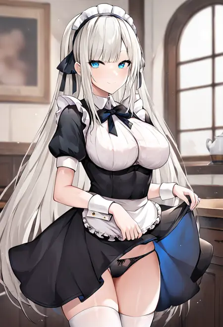 Trigger words: Mylene_Rapha_Holfort, blue eyes, white hair, long hair,