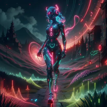 この世界では、人類が音の固体状態を制御し、あらゆる構造物や物体に織り込んで、機能性と美しさの交響曲を生み出しました。建物は調和的なエネルギーで響き、楽器は現実を形づくるメロディを奏で、ハーモニクスで駆動される機器は精度と優雅さで任務を遂行します。これは、音の力が単なる音響を越え、存在の構造自体を科学と芸術の調和した融合へと変える世界です。