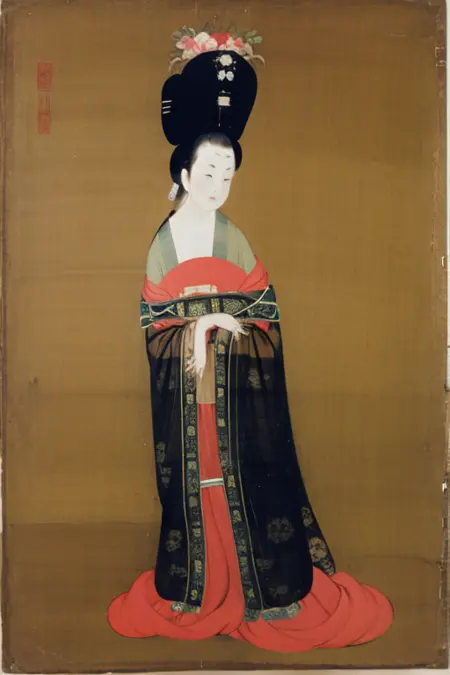 당대 장현과 주방의 「당궁사녀도」, 「침화사녀도」에서 영감을 받았으며, AI를 활용하여 당궁 사녀의 아름다움을 이어가고자 함