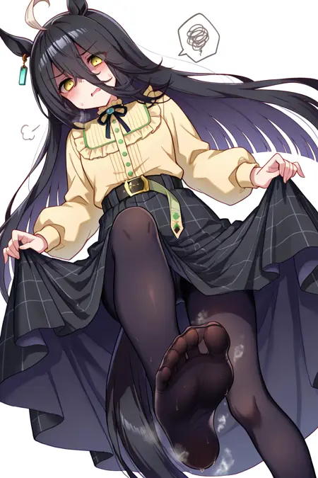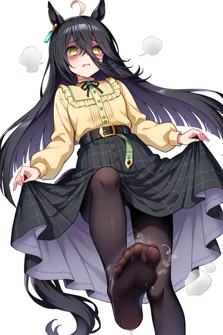 horse tail,pantyhose,tail,black belt,casual,long skirt,