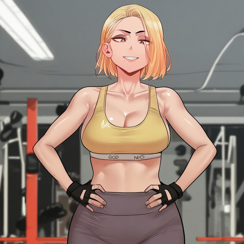 1. ((灰色运动文胸,露脐,黑色瑜伽裤,黑色露指手套,黑色项圈, ))