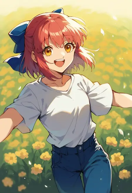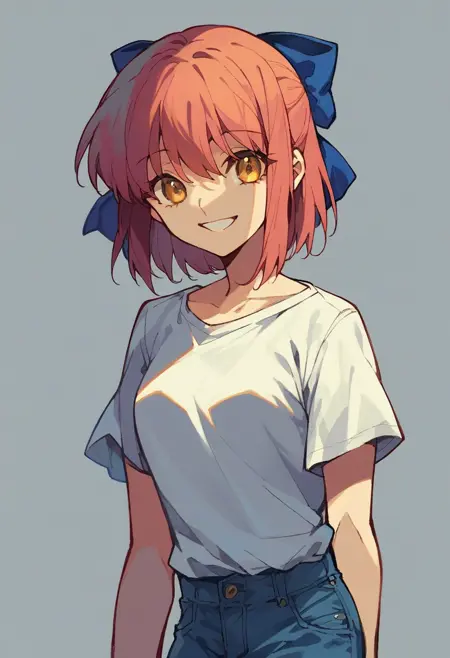 Common tags: kohaku \(tsukihime\), tsukihime, yellow eyes, blue bow, hair bow,