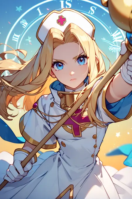 你还可以加上手持法杖,让她拿着法杖(希望如此)。