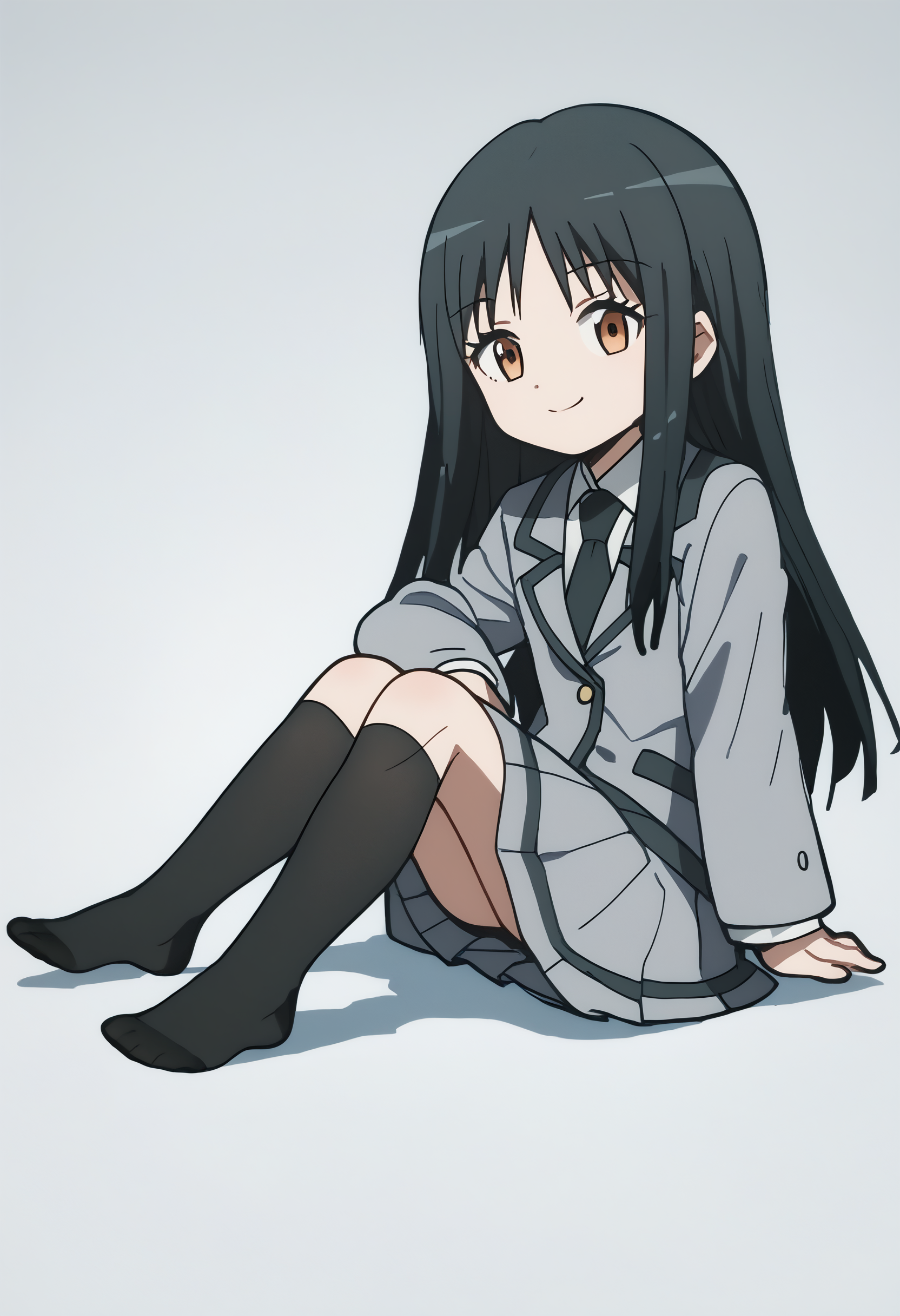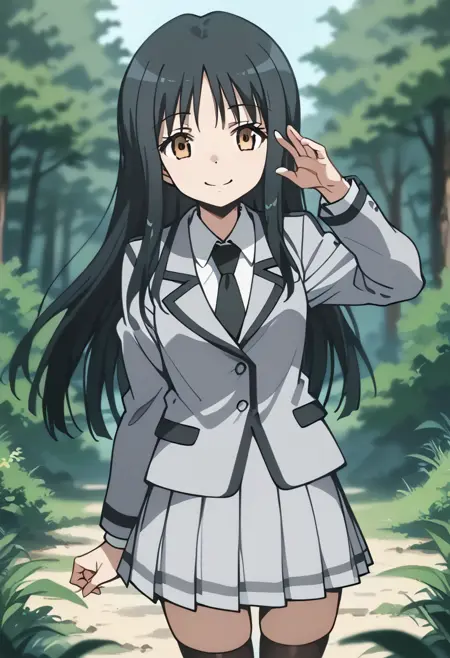 school uniform, gray jacket, white shirt, black necktie, gray skirt,