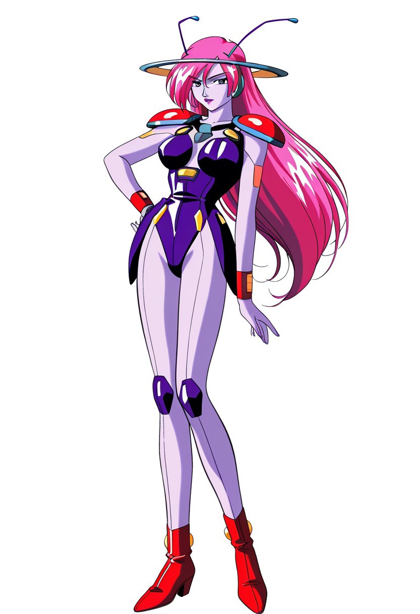 primarda_zonder, 1girl, long hair, antennae, pink hair, purple skin, lipstick, facial marker