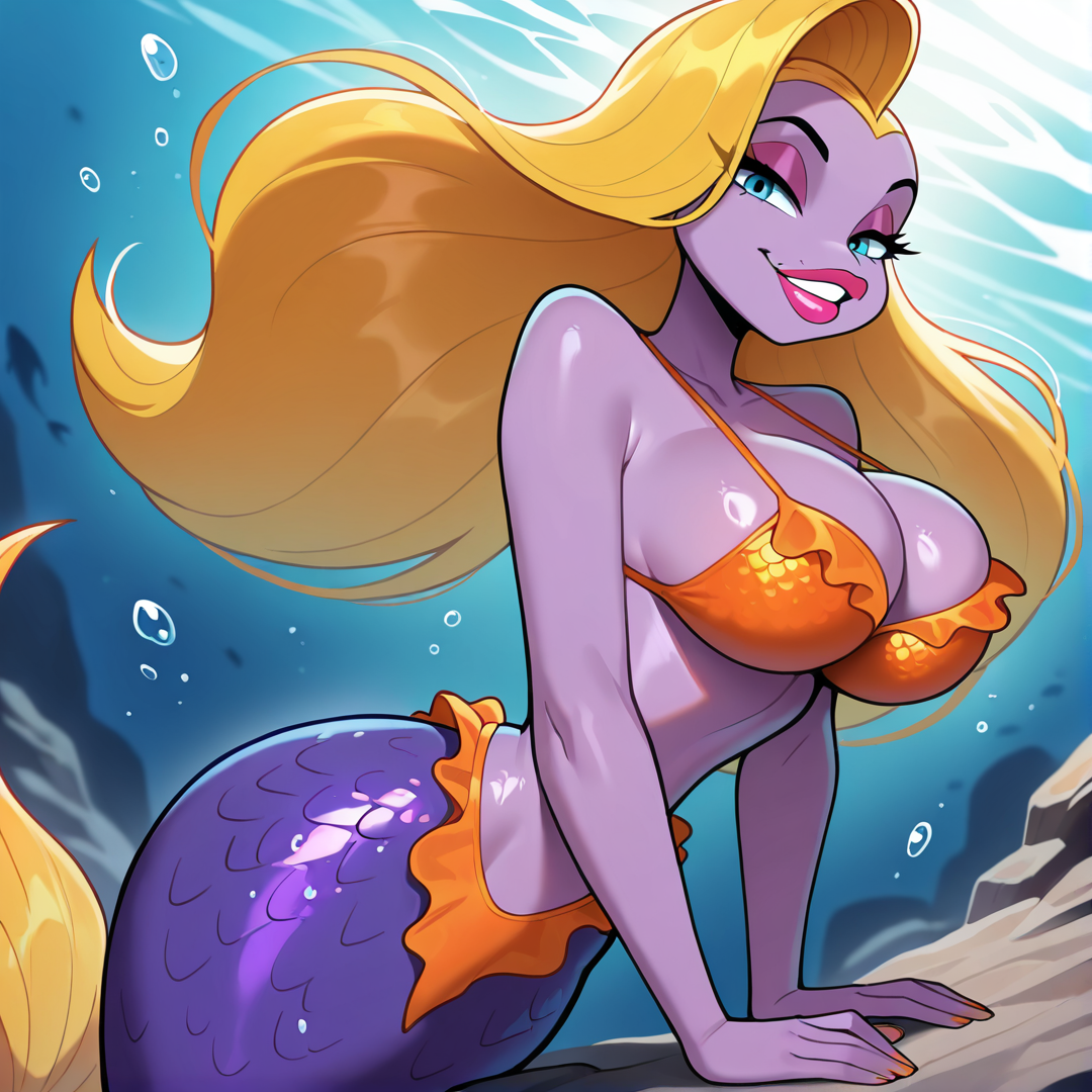 标签:angeljones、紫色皮肤、金发、怪物女孩、美人鱼、口红、长发,