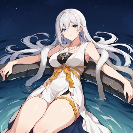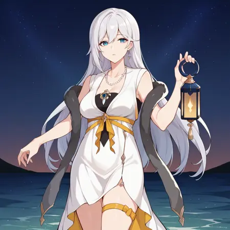 セシリア、ロングヘア、白髪、青い目、