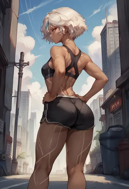 第二次升华: alt3ra2nd, 深色皮肤, 全身纹身, 白发, 面纱, 露骨服装, 分离袖子, 项圈, 裸露肩膀、腹部、腰腹、肚脐