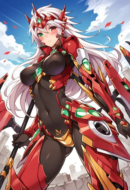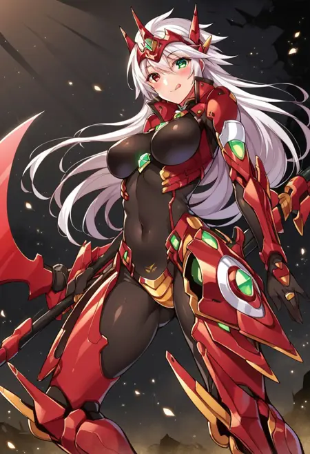 | 학습된 단어 | heterochromia, red eyes, green eyes, white hair, spiked hair, short hair, 복사됨! heterochromia eyes, red eye, green eye, white hair, long hair,복사됨! red jacket, open jacket, chest belt, black hakama, hakama shirt, hakama pants,복사됨! forehead protector, black bodysuit, covered navel, crotch plate, gold crotch plate, bridal gauntlets, red armor, shoulder armor, arm armor, mecha musume, mechanical legs, green gemstone, arm blade,복사됨! |