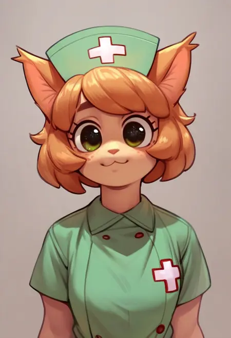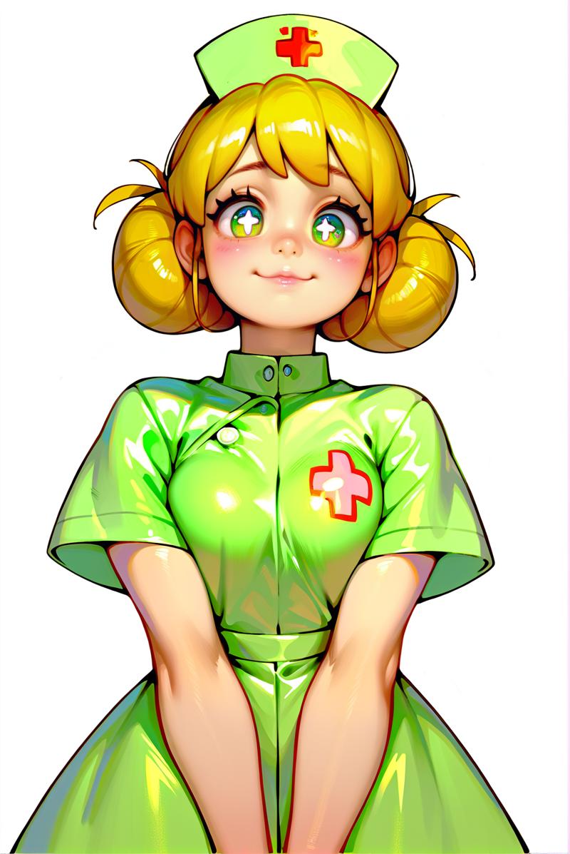 chelodoy, Chelodoy_PS, score_9, score_8_up, score_7_up, score_6_up, source_anime, high res image,masterpiece,best quality,girl,cute face,clear skin,shiny hair,ultra detailed eyes,simple background, nurse, green dress, nurse cap