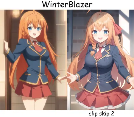 The trainer I use trains at Clip Skip 2, but the LoRA seems to work well enough with Clip Skip 1, so I uploaded images using both.