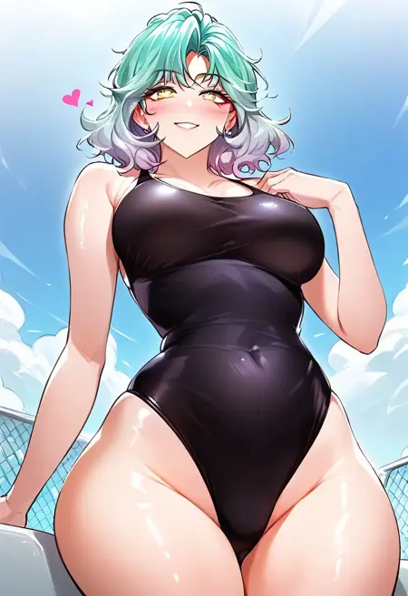 (( lora:choi\_ba-ka:1 , choi_ba-ka, 纤细腰肢,宽臀,美丽的肌肤,美丽的黄色眼睛,清澈的眼睛,明亮的瞳孔,美丽的眼睛,美丽的浅绿色头发,美丽的多色中等波波头,刘海,巨大而蓬松的乳房,自然美,超美女性,有吸引力的女性,超性感女性,充满欲望的身材,拥有诱人淫荡身体的性感女性,性感体态,丰腴身材,性感美人,无穿孔,无任何穿孔,酷女孩, ))
