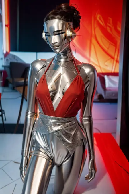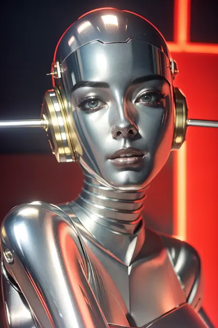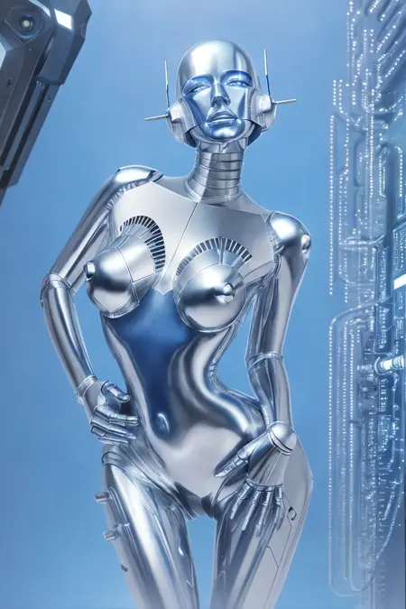 Stylization by illustrator Hajime_Sorayama (with his series of works about chrome robots)