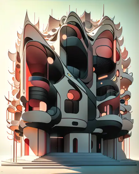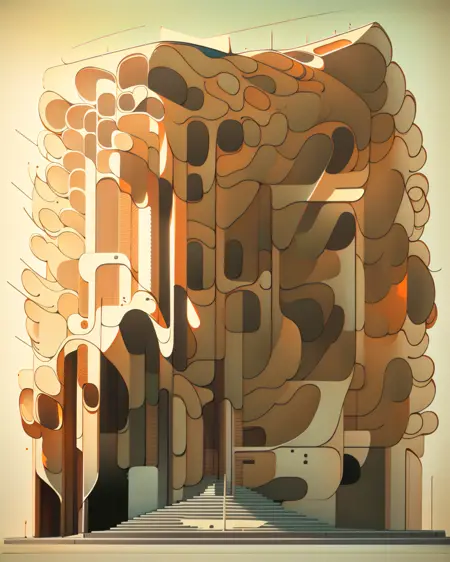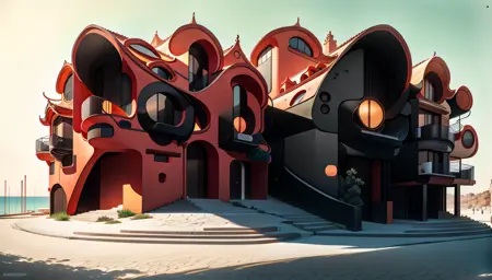곡선적인 스타일로 건물을 표현한다.