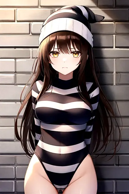 法を逃れる逃亡者向けに、監獄ストライプのレオタードを作成しました。0.6での使用を推奨します。このモデルはNAI anime-full-prunedで学習され、based68で生成されました。Google Colabを使用したKohyaツールで作成されました。データセットの改善や推奨事項があれば、ご提案をお待ちしています。