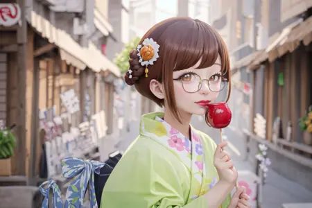 这是一个可能能够绘制出日本庙会中常见的“苹果糖”风格图像的LoRA。