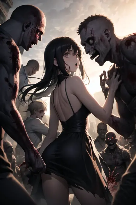 I've been meaning to release this for a while now, but took me quite some time to find a good balance of: not having the main female character being a zombie too, having detailed zombies while still keeping an anime style in anime models instead of realistic, and having a horror look without going overboard. It can also produce NSFW outputs.