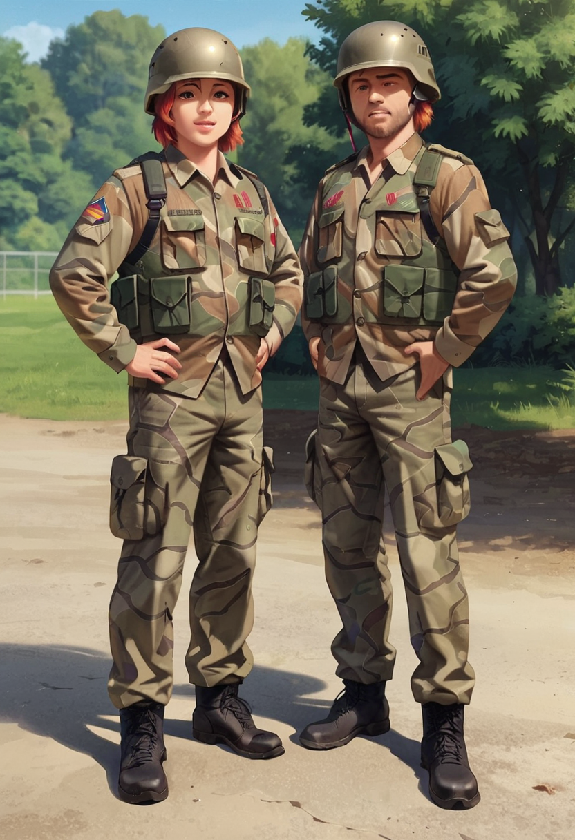 過去、大韓民国海兵隊はカメの甲羅に似た珍しい迷彩パターンを使用していました。これはそれを再現しようとするものです。プロンプトは "SKMCTortoise,uniform,military uniform,jacket,pants,camouflage" です。