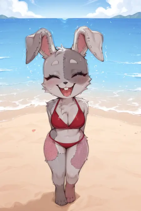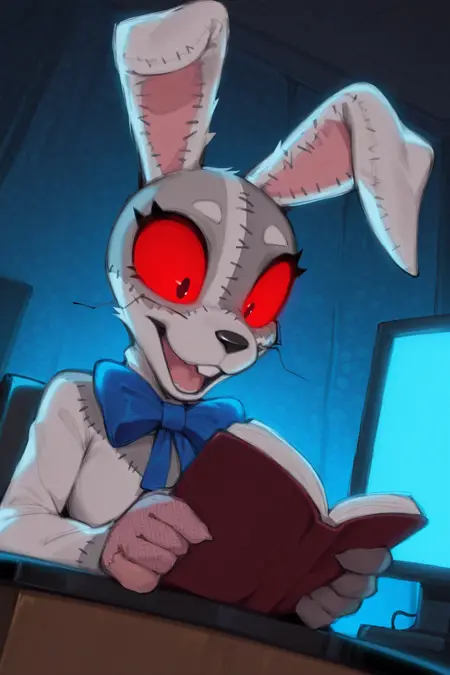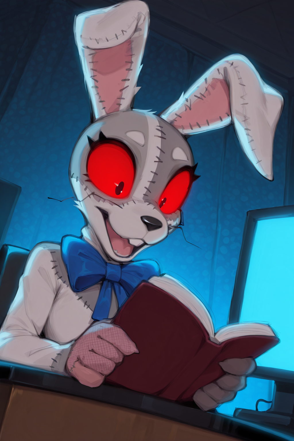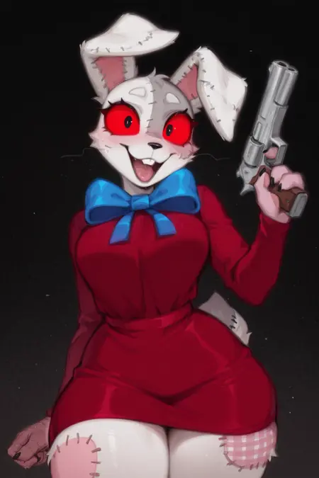 "바니, 패치워크 코스튬, 래빗 코스튬, 파란 리본"으로 프롬프트하면 상당히 빠르게 소환 가능하지만, 눈동자 부분이 다소 예측 불가능하며 일반적으로 몇 번의 생성 과정을 거쳐야 합니다. "블랙 푸푸" 추가가 약간 도움이 될 수 있습니다.