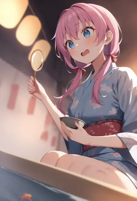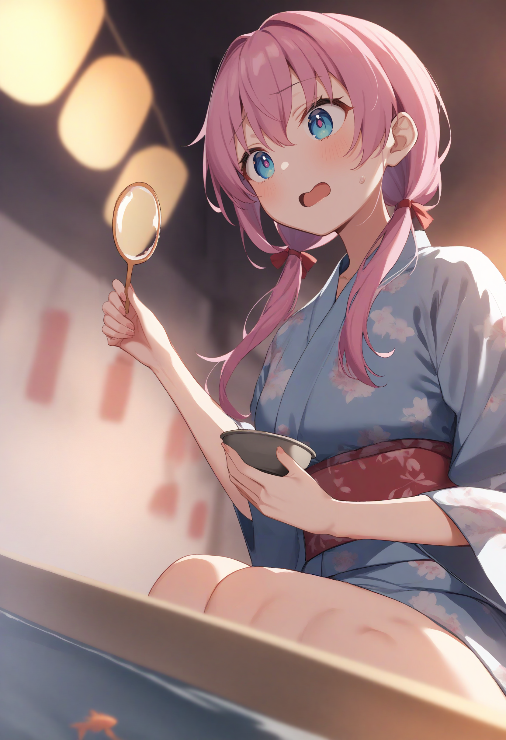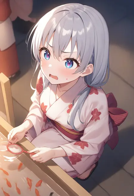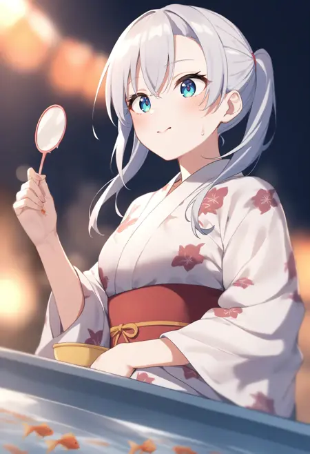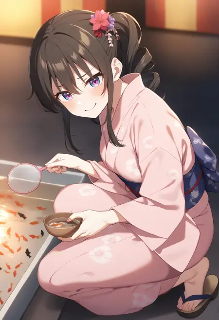This LoRA lets you play goldfish scooping, a staple at Japanese summer festival stalls.