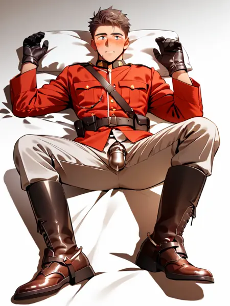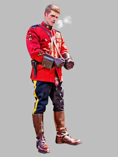 加拿大皇家骑警制服,包括骑马靴和手套。