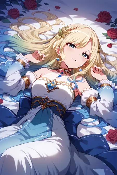 "후미"와 "1girl"을 사용하세요. 다양한 옷을 원한다면 샘플 이미지의 프롬프트를 참고하세요. 헤어스타일은 금발, 긴 머리. 모든 것이 잘 작동합니다. 헨티도 가능합니다.