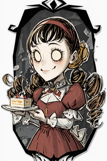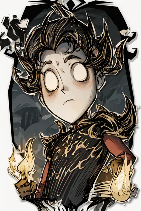 This lora creates Don't Starve style characters, specifically the skin portrait art in game, full weight will most likely get the black framing.