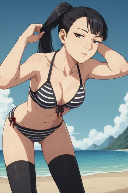 트리거: KJOhien, 검은 머리, 어두운 눈, 비대칭 앞머리, 머리 땋기, 눈 밑 점, 큰 코,