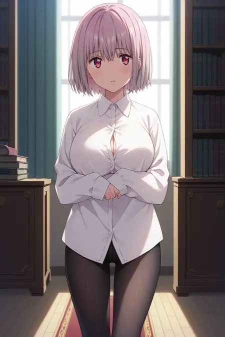 KJOakane, 단발, 분홍색 머리, 분홍색 눈