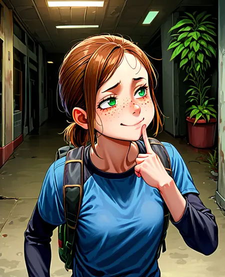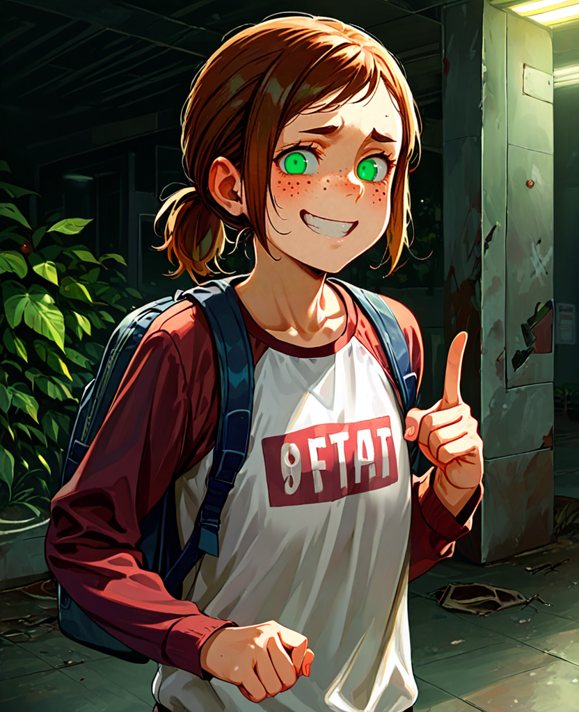 마지막의 아이들에서의 엘리 윌리엄스, 다양한 입히기 가능한 옷을 갖추고 있지만, 배낭을 원하지 않으면 부정적 키워드에 추가하는 것을 권장합니다. 이 모델은 엘리의 200개 이상의 이미지를 사용합니다.
