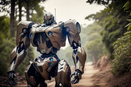 2.0.x 变体模型则是基于 28 张 Midjourney 生成的极其写实、流线型的机器人与装甲图像,使用 SD 2.1 768 进行训练。