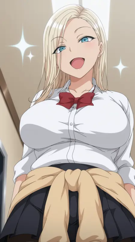 可选触发词:弓、校服、衬衫、白衬衫、腰部衣物、辣妹、套头衫围在腰间