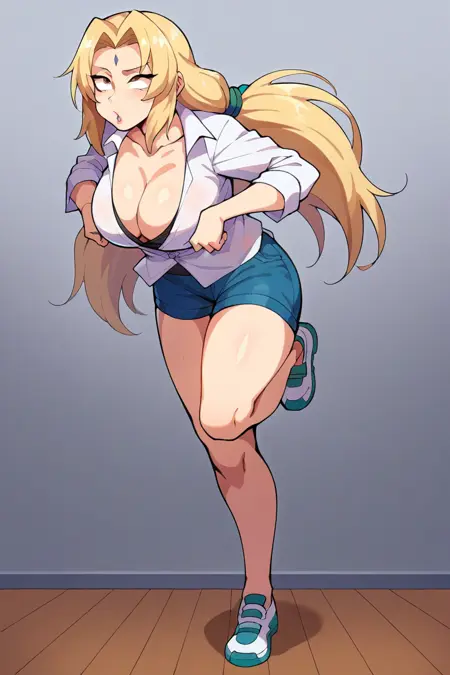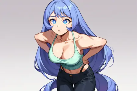该模型似乎与“翻白眼”和“微张的嘴唇”面部表情搭配良好,赤脚似乎能整体增强姿势的权重。