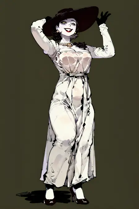 prompt for x/y: score_9, score_8_up, score_7_up, rating_safe, 1girl, solo, long hair, curly hair, wavy hair, orange hair, orange eyes, looking at viewer, breasts, dress, white dress, puffy sleeves, puffy short sleeves, short sleeves, gloves, elbow gloves, white gloves, cowboy shot, closed mouth, standing, outdoors, field, flower, grass, plant, sky, lora:choo:LORA
