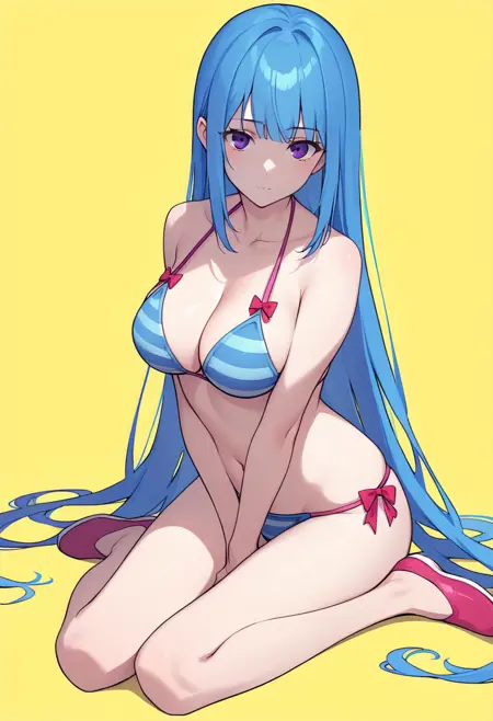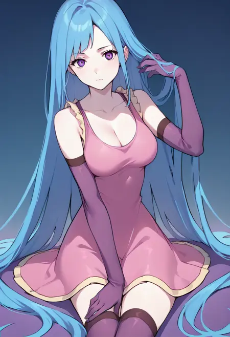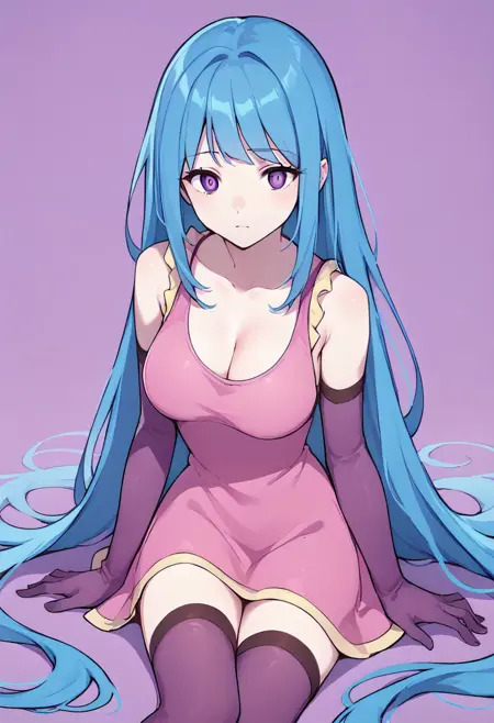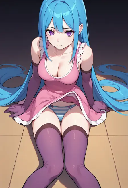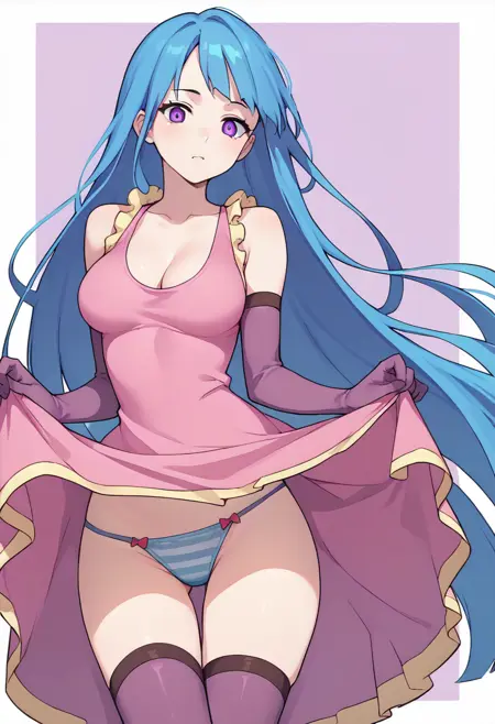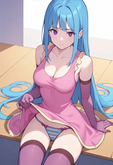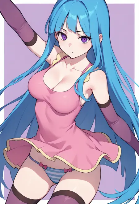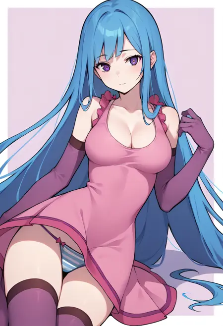 | トレーニングワード | MEMEME, long hair, breasts, purple eyes, very long hair, blue hair, medium breasts,コピーしました! detached sleeves, cleavage, sleeveless, elbow gloves, sleeveless dress, gloves, purple thighhighs, pink dress, dress, collarbone, コピーしました! swimsuit, bikini, triped bikini, striped, navel, groin, blue hairコピーしました! |