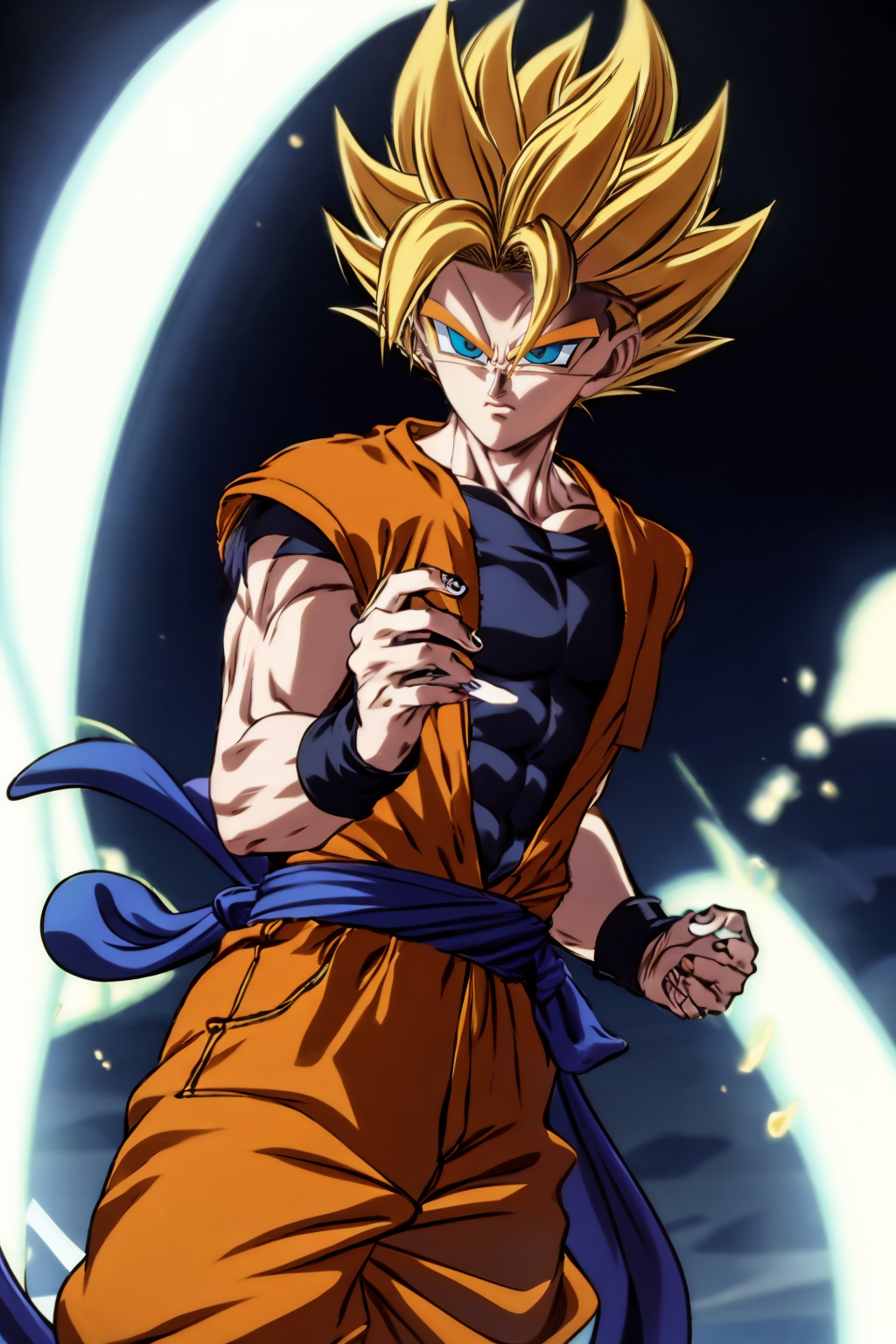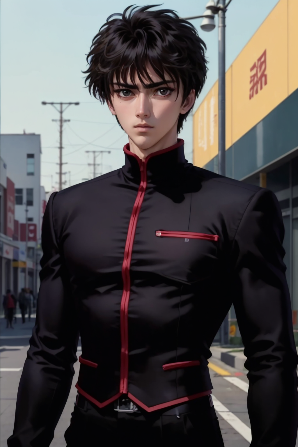 彼の普段の衣装black jacket, black pantsですが、服がくっつきすぎた場合のネガティブとして使えるかもしれません。データがほとんど彼がこの服装をしている画像のみで構成されているため、多少過学習気味です。