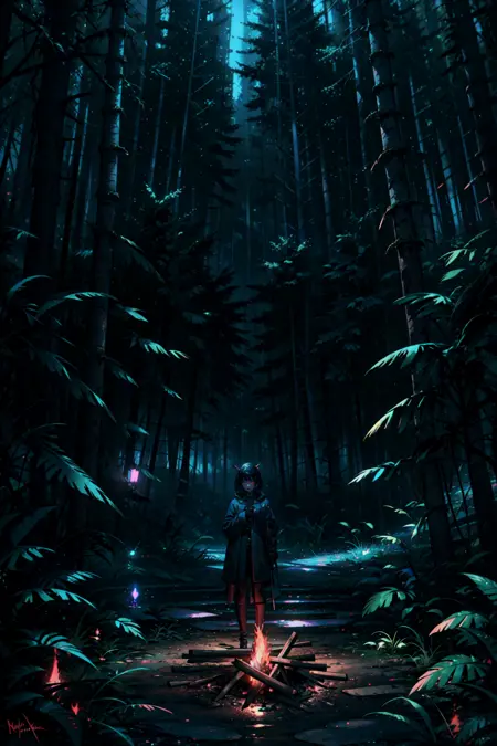 [COLOR+STYLE] It generates DARK images with the shadows and minimal light. Depending on the model's base brightness, you may 1) generate character with black skin and/or 2) generate luminous backlighting.