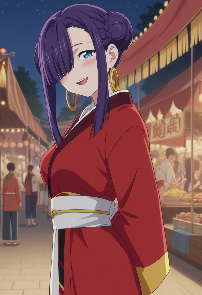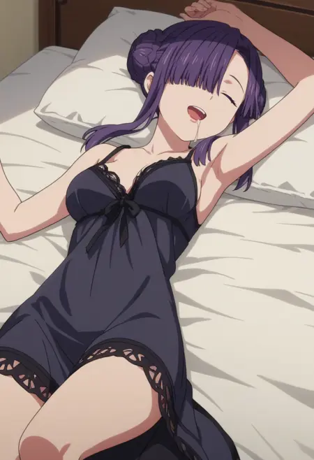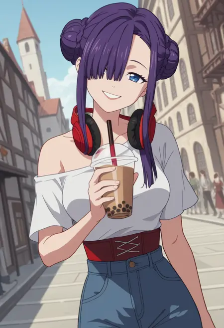 트리거: KJOhime, 보라색 머리카락, 파란 눈, 비대칭 앞머리, 눈을 가린 머리카락, 옆머리, 더블 버ン