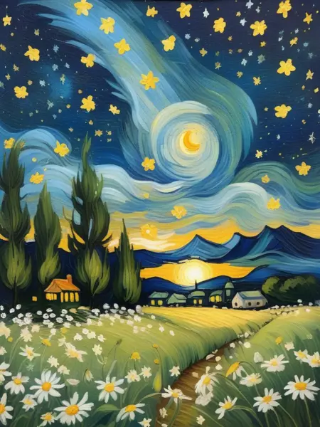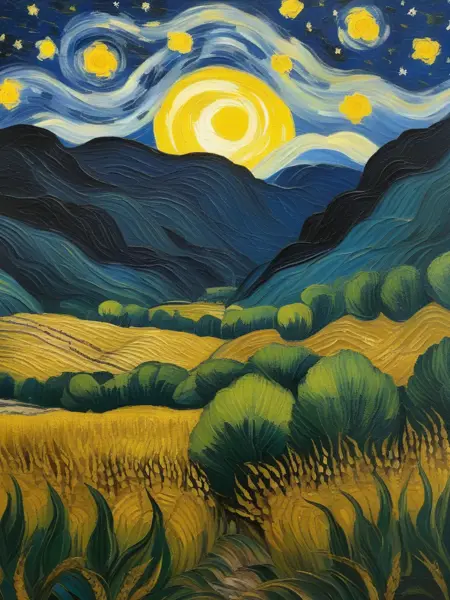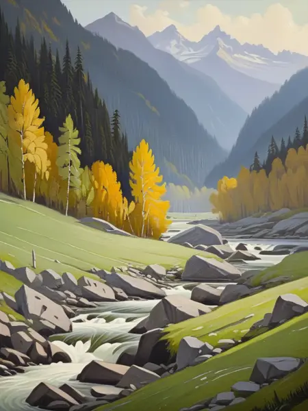 (If without triggers, it still works but with limit painting effects. If the result is not towards the style you like, recommend to adjust the Lora weight or add some style words that you may like into Positive Prompts,for example: "painting,oil painting,peaceful,nature,landscape,artistic style,vivid color,...etc ."