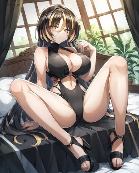 最後の衣装(エキセントリックレディ)のトレーニングデータには下半身が含まれていないため、必要に応じて足元の装いを柔軟に追加してください。