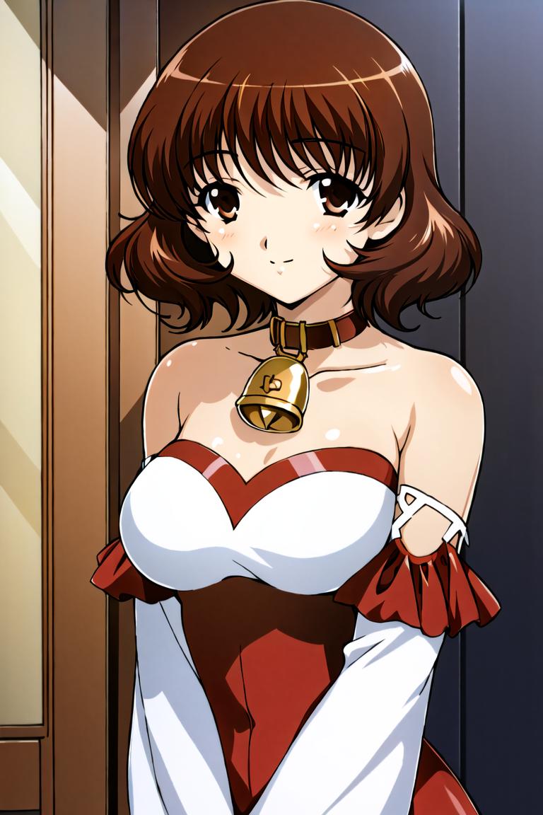 기본 프롬프트: 솔로, 1명의 소녀, 짧은 머리, 갈색 머리와 눈, 빨간 스웨터, 주름 치마, 파란 치마, 오무라유미