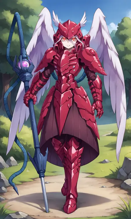 パワーアーマー衣装:レッドパワーアーマー、フルアーマー、ロングスカート、プレーツスカート、Shalltear_Bloodfallen、レッドヘルメット、ウィンゲッドヘルメット、ホワイトフィーバー、レッドパウルドロン、レッドブレストプレート、レッドガントレット、レッドグリーブ、エンジェルウィング、ホワイトウィング、フェザードウィング、レッドアーマードブーツ、ニーブーツ、ハイヒール、ヴァルキリー