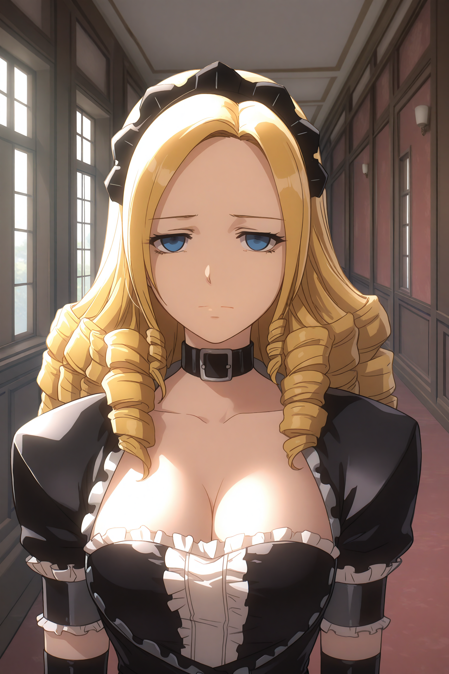 외형 태그: solutionepsilonmaid, blonde_hair, blue_eyes, drill_hair, empty_eyes