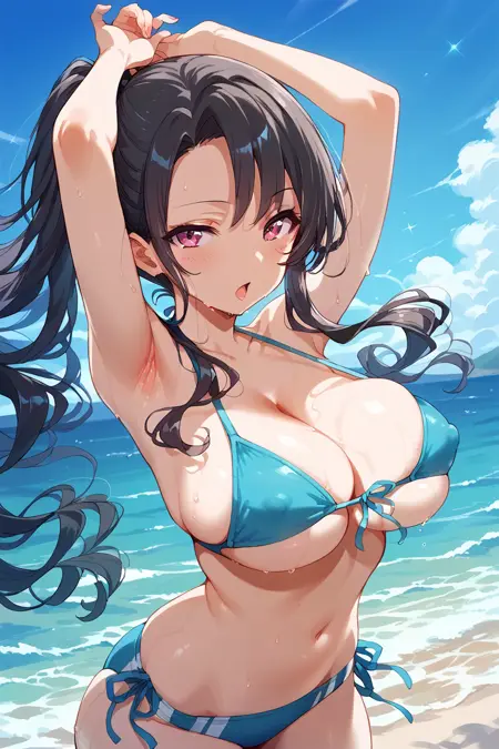 使用“瑞”和“1girl”。如需多样化的服装,可参考示例图片中的提示词。发型为黑发、马尾。所有效果都很出色,包括Hentai风格。