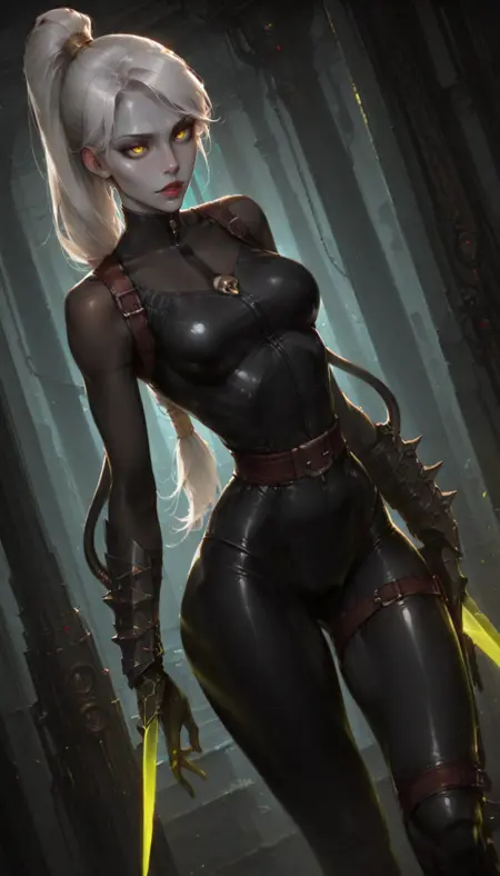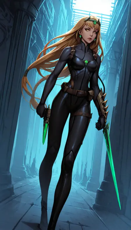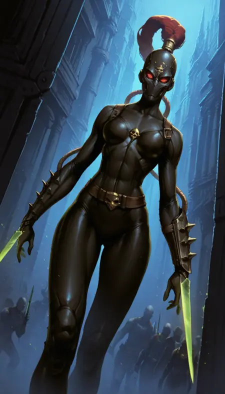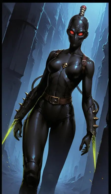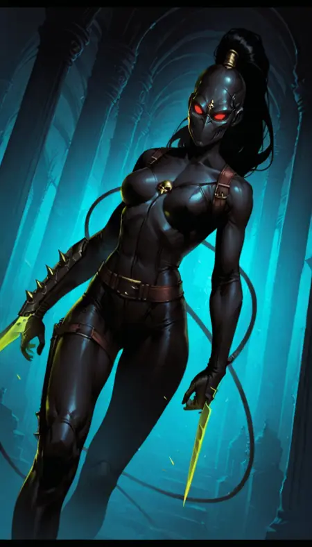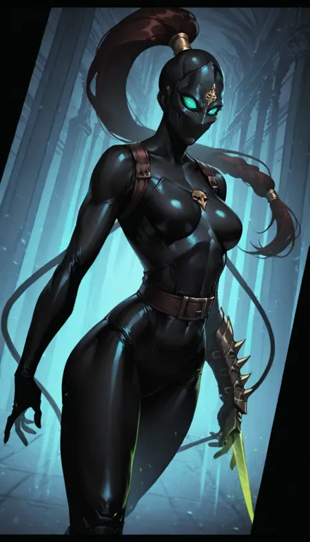 Promts: Callidus assassin, black bodysuit, wrist blade, mask / no mask