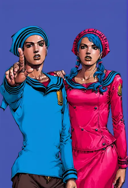 卓越的 版本 LORA 在 20 幅荒木飞吕彦的作品上进行了训练,以保留其原始画作的风格,而非动漫改编风格。不幸的是,即使训练步数很少,它仍然出现了过拟合。因此,我不建议使用高于 3 的 CFG 值——超过这个值在我看来已经过于刺眼,偏离了原始意图。